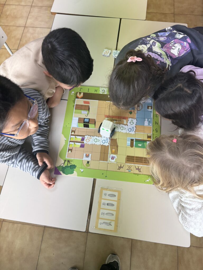 A les aules de cicle inicial continuem avançant en l’aprenentatge de la robòtica com a eina educativa clau per al desenvolupament integral dels nens i nenes. A través del treball amb els robots Kubo, els infants aprenen a donar instruccions de manera clara i ordenada, adquirint progressivament més control sobre els moviments i les accions dels robots.
